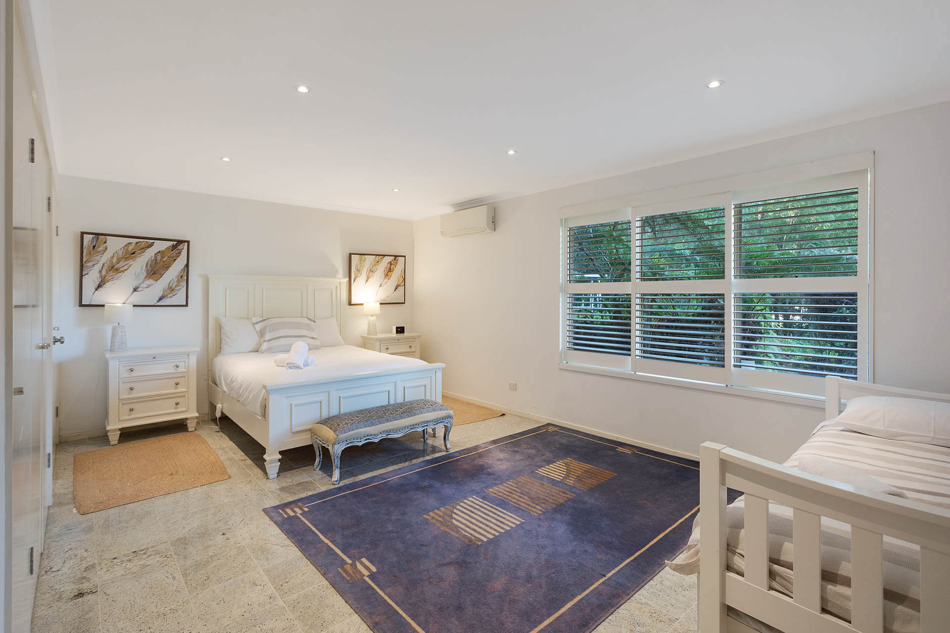 - Bedroom 4 has two long single beds
