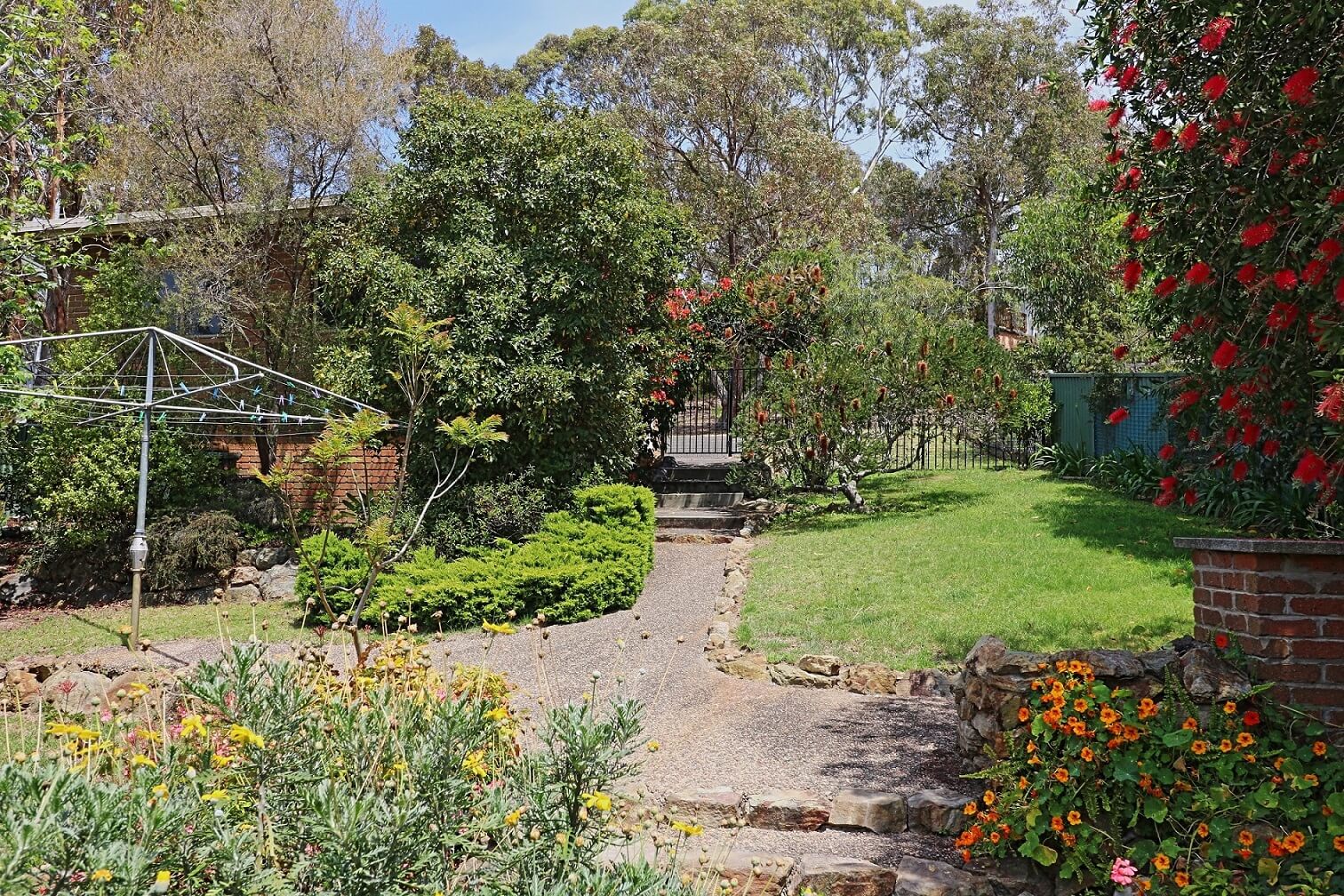 In addition, the back garden (fenced) is beautiful. Gillmith also boasts a carport at the front (where you will find some Kayaks) and a double garage out the back (where you will find the dryer (if needed), a few bikes and some boogie boards. To access the garage from Corakai Drive you need to turn right into Taleeban St and then left into the first lane way.