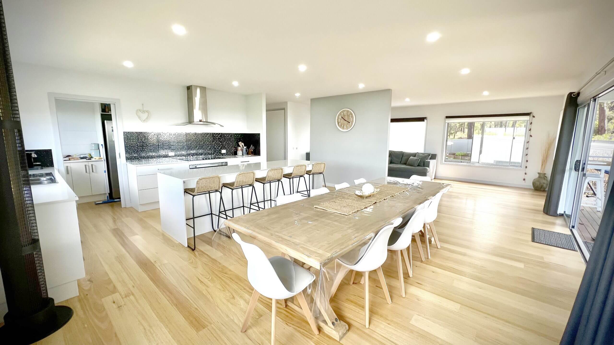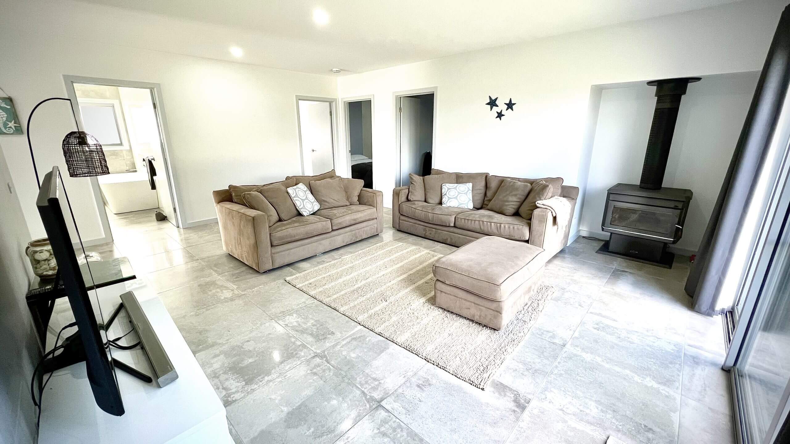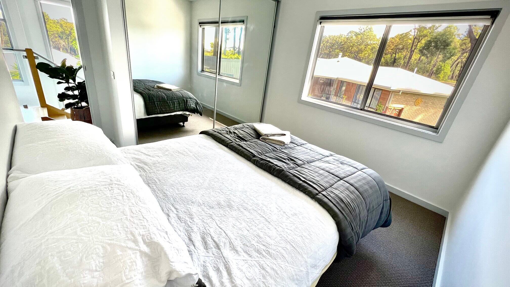 Enter the house on the ground level through the front door and be in awe of the stunning sun-filled entrance. On the ground floor you will find the entrance to a double lock up garage and a huge rumpus/living room with a woodfire place. The ground floor is also home to 3 of the bedrooms each consisting of Queen-size beds. Head upstairs to find the 2 additional bedrooms including the glorious Master bedroom, with its own en-suite and a walk though wardrobe.