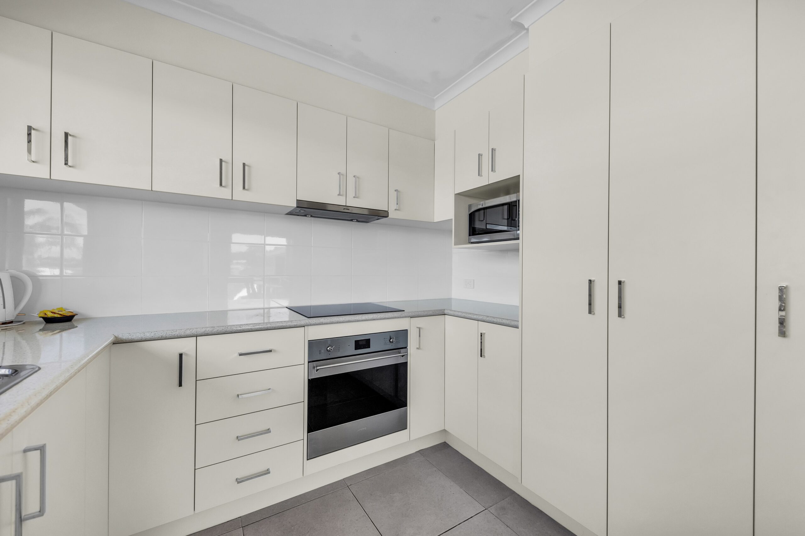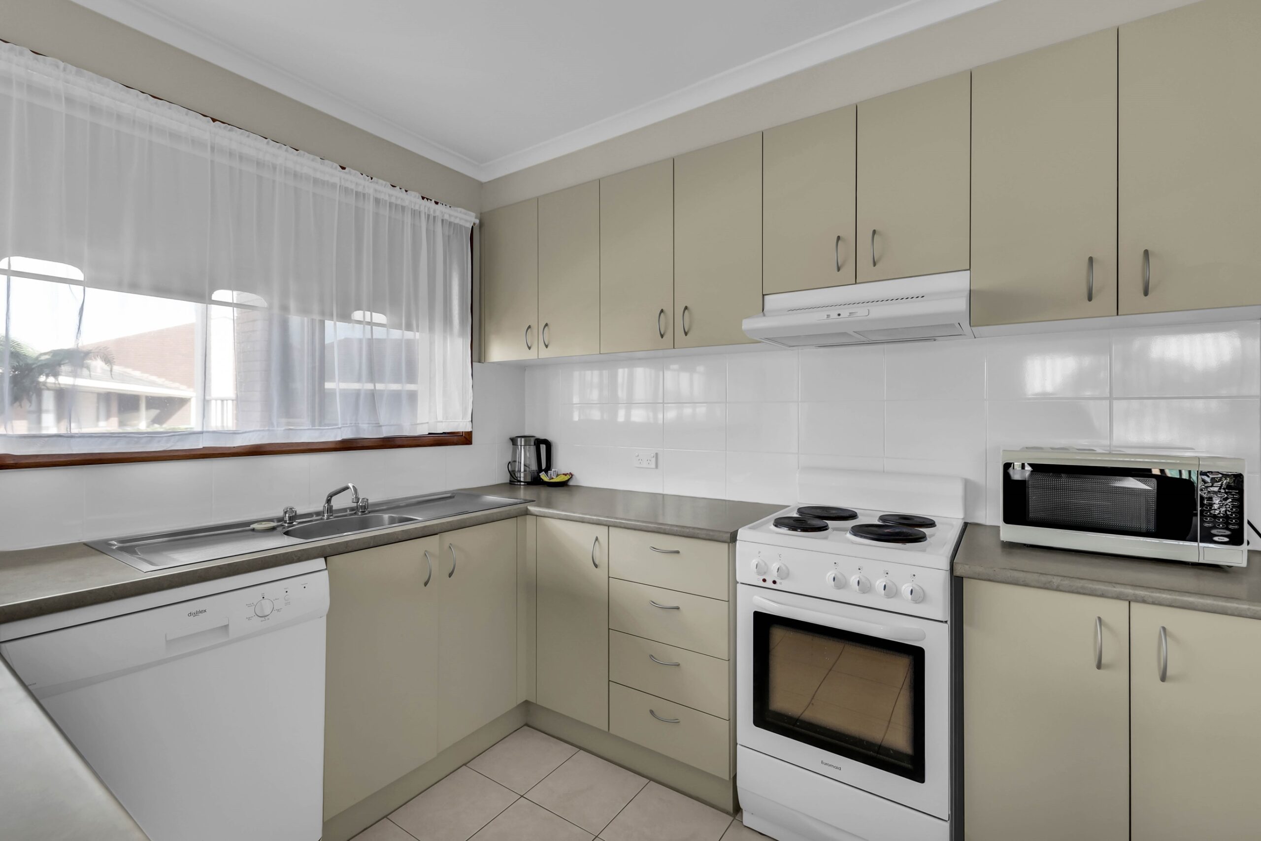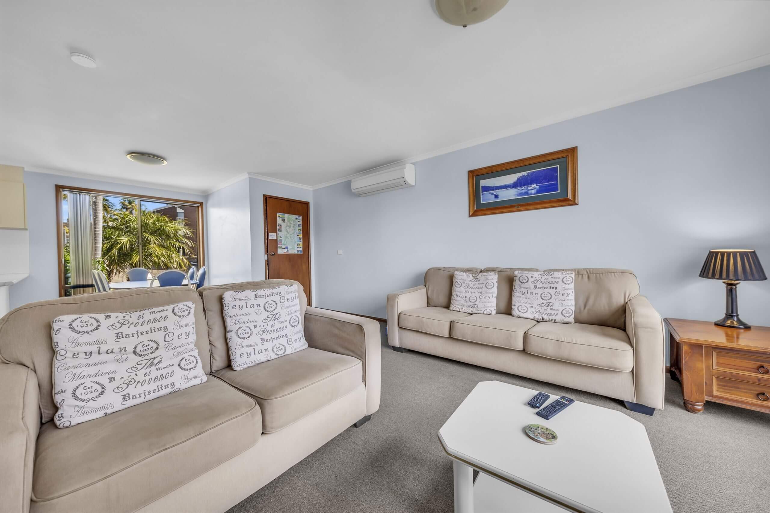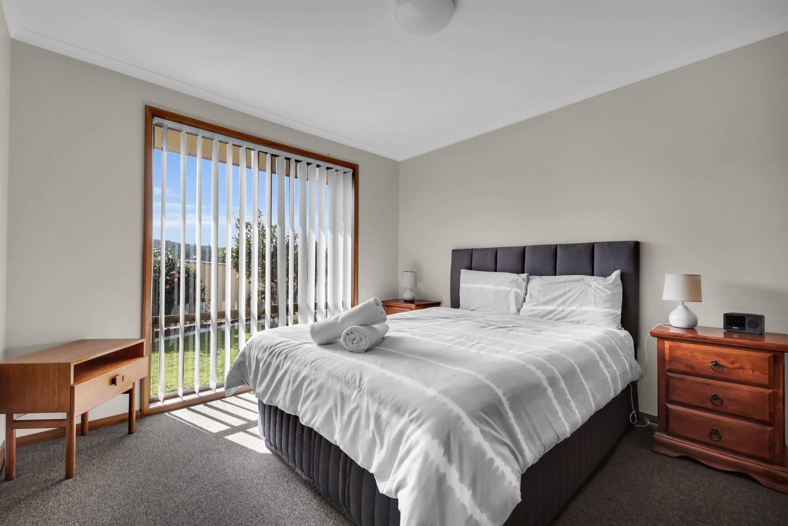 The unit has 1 x queen bed and 2 x single beds