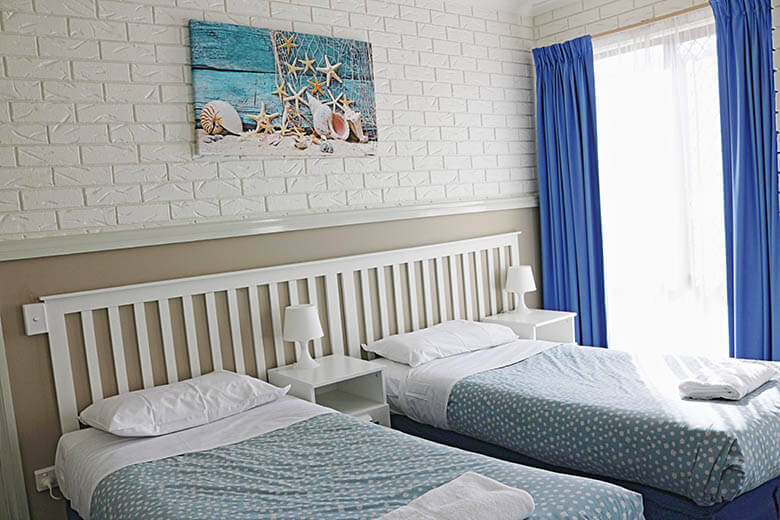 We have 16 – 2-bedroom apartments in a complex that has 31 apartments. Our Superior Units have been updated compared to our standard units, with new modern furnishings, artworks and some with new kitchens and bathrooms. When you book these apartments, you are booking an apartment with 1 queen bed and 2 x single beds. Our apartments have all the facilities you will need for your next getaway, including a washing machine and dryer, fully equipped kitchen with a full sized fridge/freezer, bathroom, living area and dining, and Free WIFI. Each apartment is individually owned. This means that the decor is different in every unit. We have taken photos of 2 of the units that we think represent the units the best. We offer ground level apartments as well as second floor apartments. We also have some units that have 2x bathrooms, although we cannot always guarantee you a unit with a second bathroom, we will do our best to fulfil your needs when requested.
