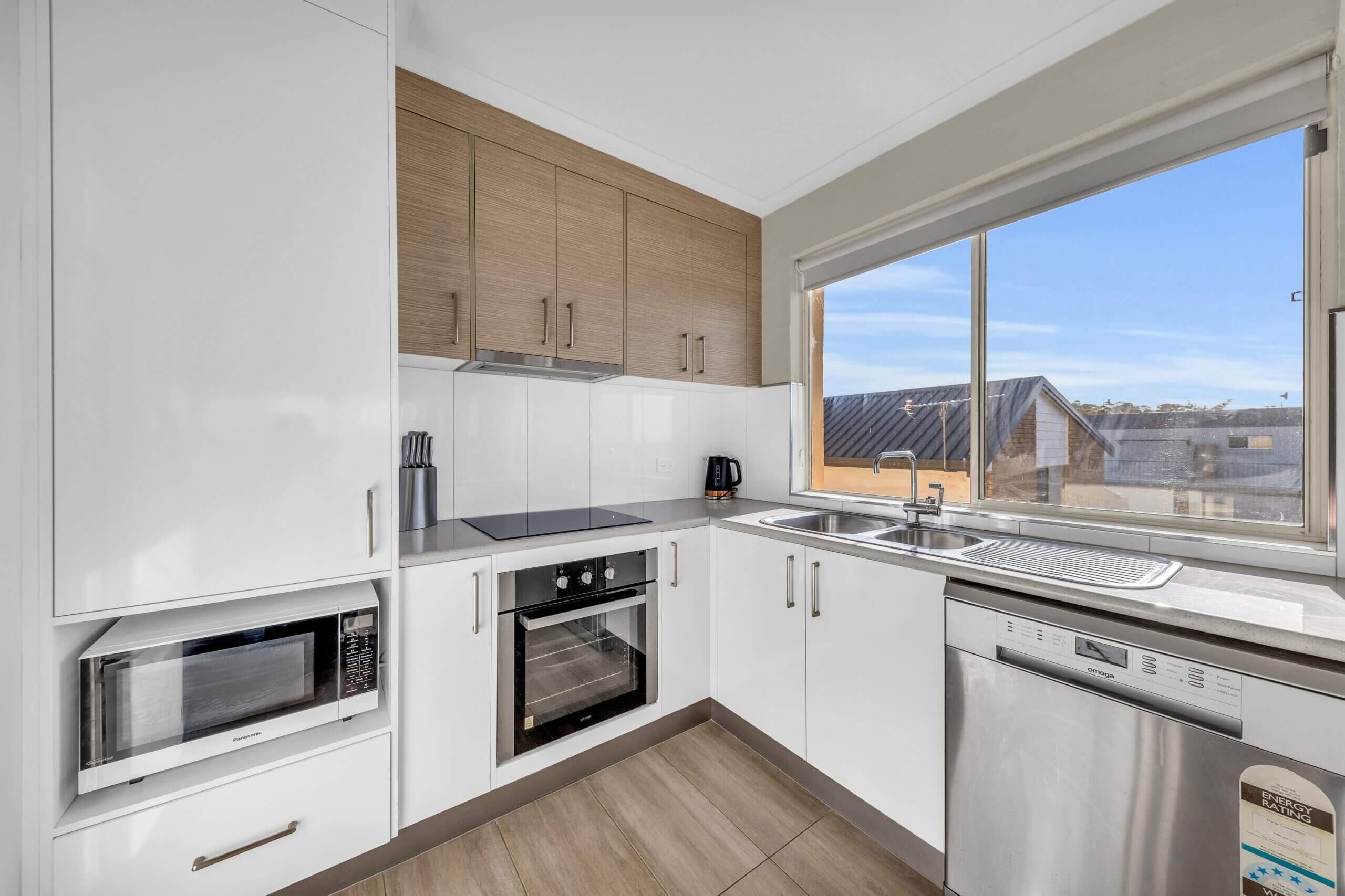 Each apartment boasts 2 x bathrooms, 2 x bedrooms, reverse cycle heating and cooling, a spa bath, a private deck with amazing views, full laundry and kitchen, and unlimited wifi.