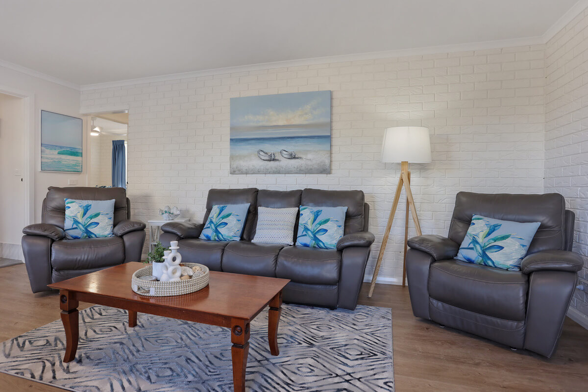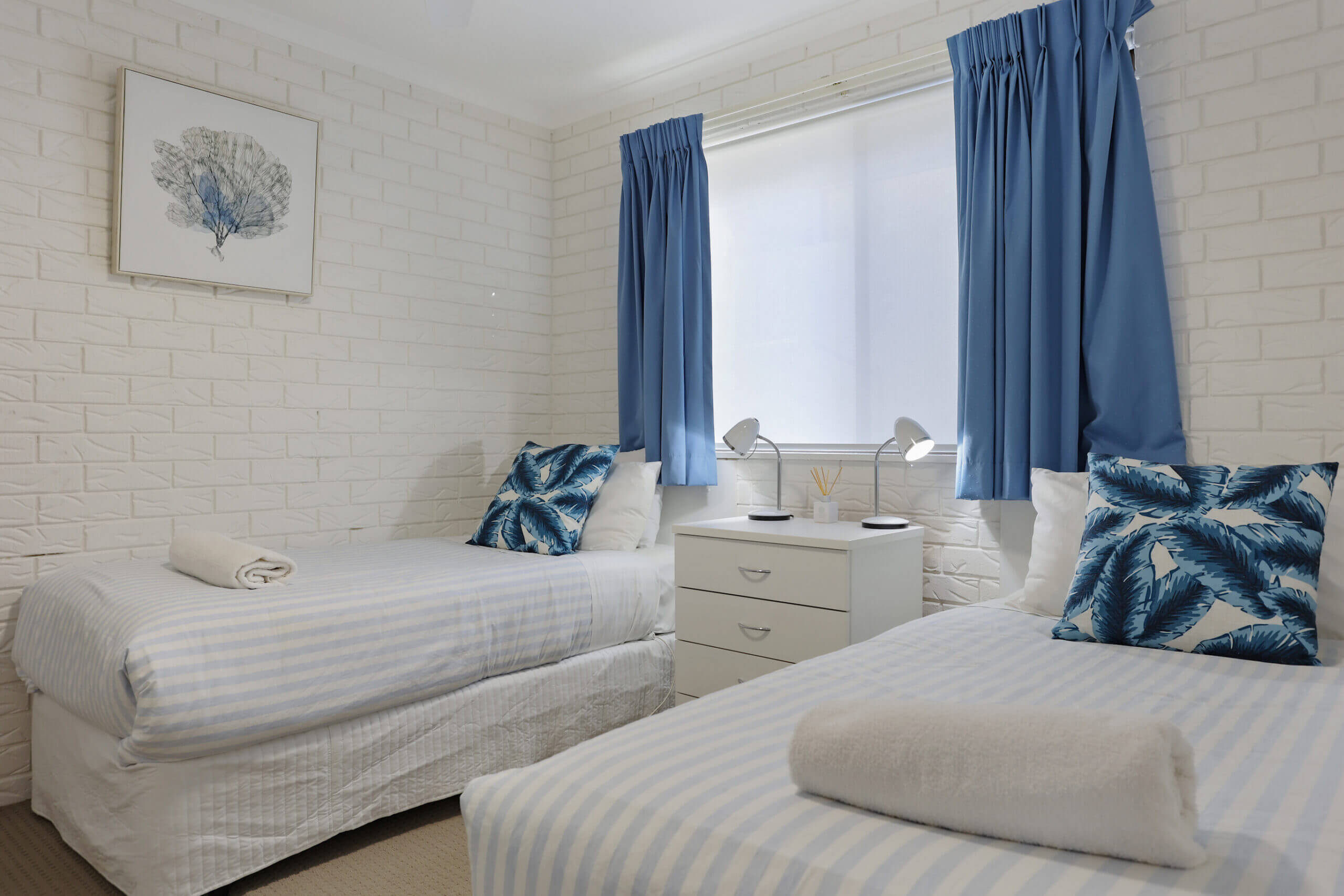 Fully self-contained apartment in Merimbula fitted with reverse cycle air conditioning/heating and free WIFI. Capri Apartments’ 2 and 3 Bedroom accommodation are spacious, modernly refurbished, clean and set in an extensive and relaxing garden atmosphere with superb water views of Merimbula Bay and the Pacific Ocean. Apartments have full, well equipped kitchens; own full laundry; queen bed in main (all beds have electric blankets -not that they are often needed) and all linen including towels etc is provided. Bathrooms have both a separate bath and shower and toilet is separate from bathroom. Wireless Internet available; DVD/CD/Radio. Apartments have outdoor settings with additional settings throughout property. On-site parking including additional parking for boats and trailers (must be arranged when booking accommodation)