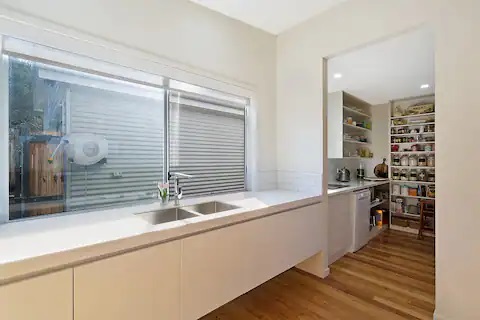 Seachange at Tasman offers a fantastic 3 bedroom architecturally designed home with stunning views and two balconies. Furnished just perfectly with a light airy coastal feel you will know you have made it to the coast the moment you walk in the door. Make yourself at home with the huge chef’s delight kitchen that includes everything you will need and more. Including a great breakfast bar that sits 4, a gas stove, dishwasher and generous butler’s pantry. The kitchen flows through to the main living and dining area with reverse cycle air conditioning and ceiling fans you can escape from those hot summer days. Open the glass sliding doors out onto the balcony and enjoy the beautiful morning sun beaming down. On the main level on the house you will find 2 of the queen-sized bedrooms and main bathroom with walk in shower and a bathtub. Make your way upstairs to the perfect parent’s retreat. The huge bedroom that spills out onto a small balcony has a queen sized bed with en-suite and your own private seating area with a wall-mounted tv.