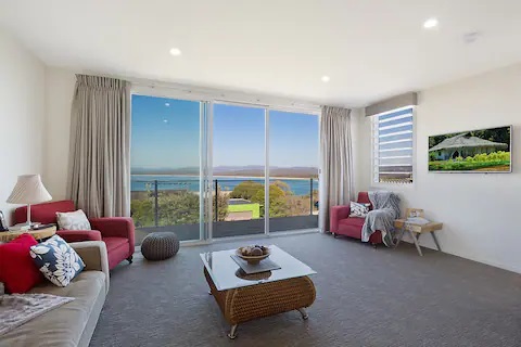 Located in one of Merimbula’s prestigious locations this Holiday Home is perfect for your next Holiday! This modern home has magnificent panoramic views of Merimbula Bay, Merimbula Wharf, Haycock Point, Pambula town and beach and Merimbula Lake and only a short walk to popular Bar Beach & Merimbula Wharf.